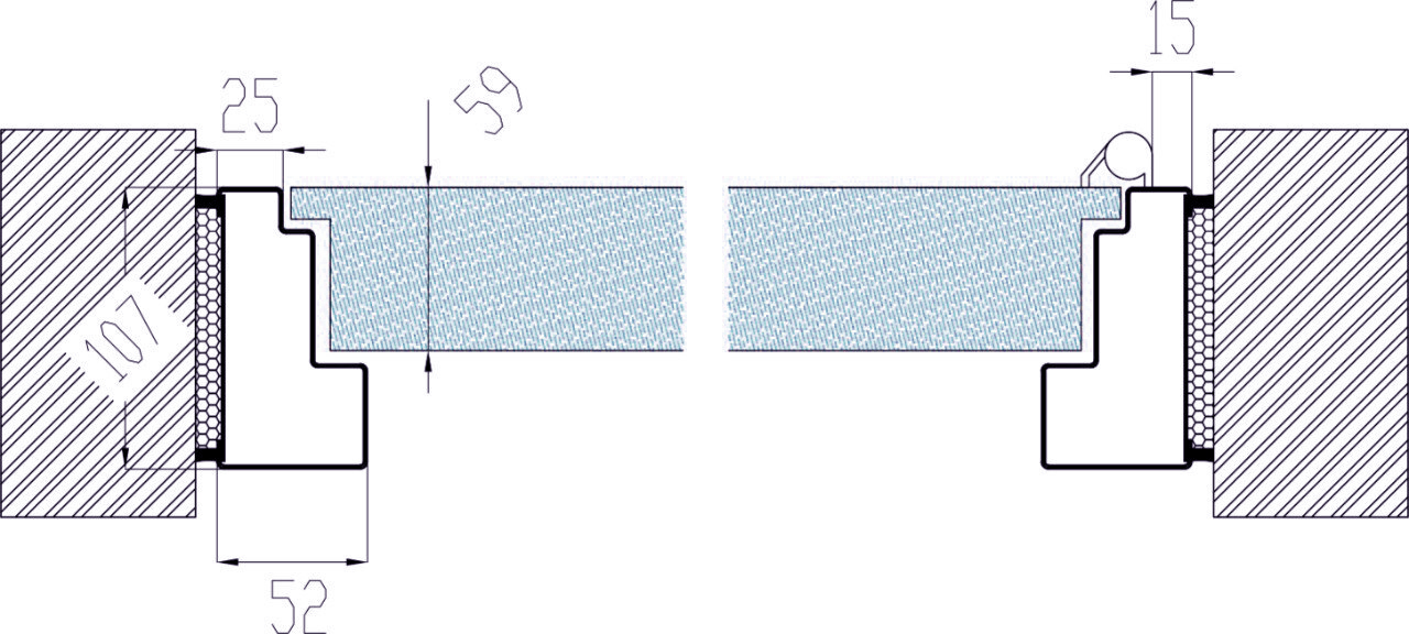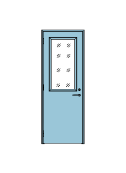 Steel frame wooden leaf for internal use.